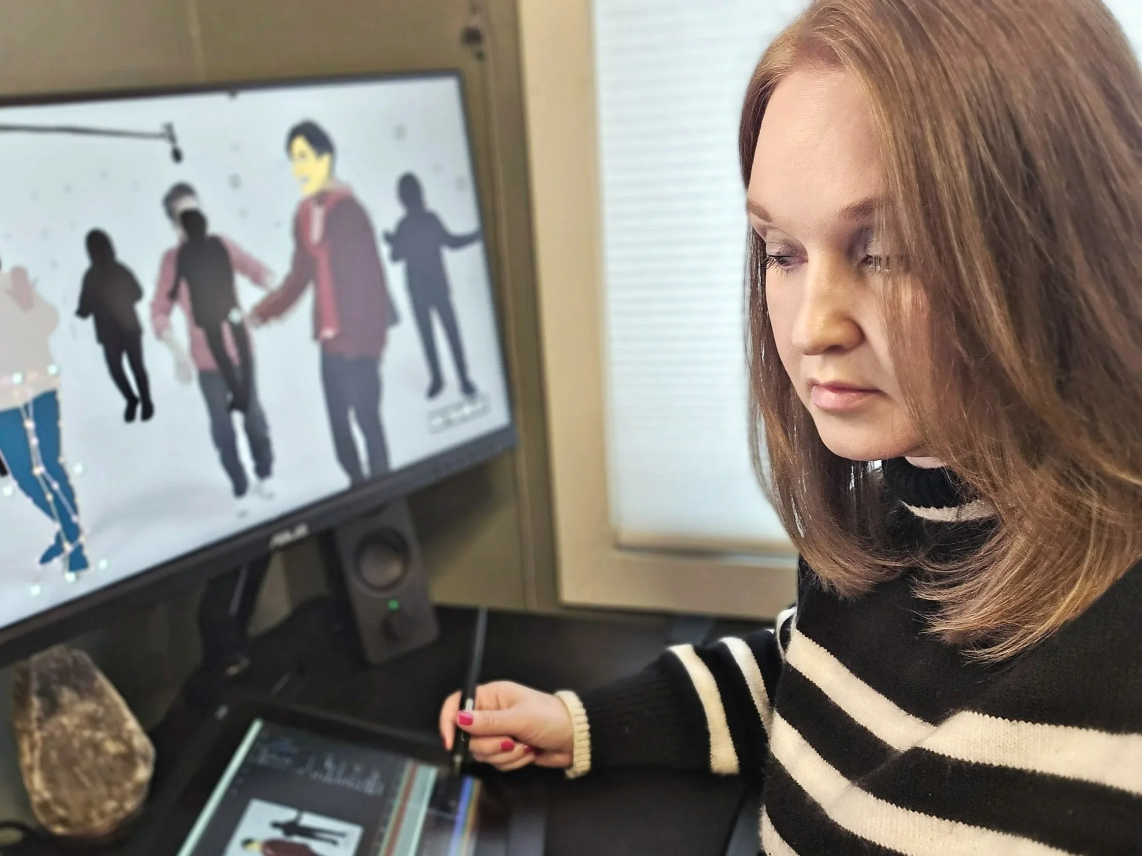 Born in Gent, Belgium, she earned her BA degree in graphic design at LUCA. Over the last 15 years, she collaborated with clients from all over the world, on a wide variety of projects such as games, animated shorts, live drawing.